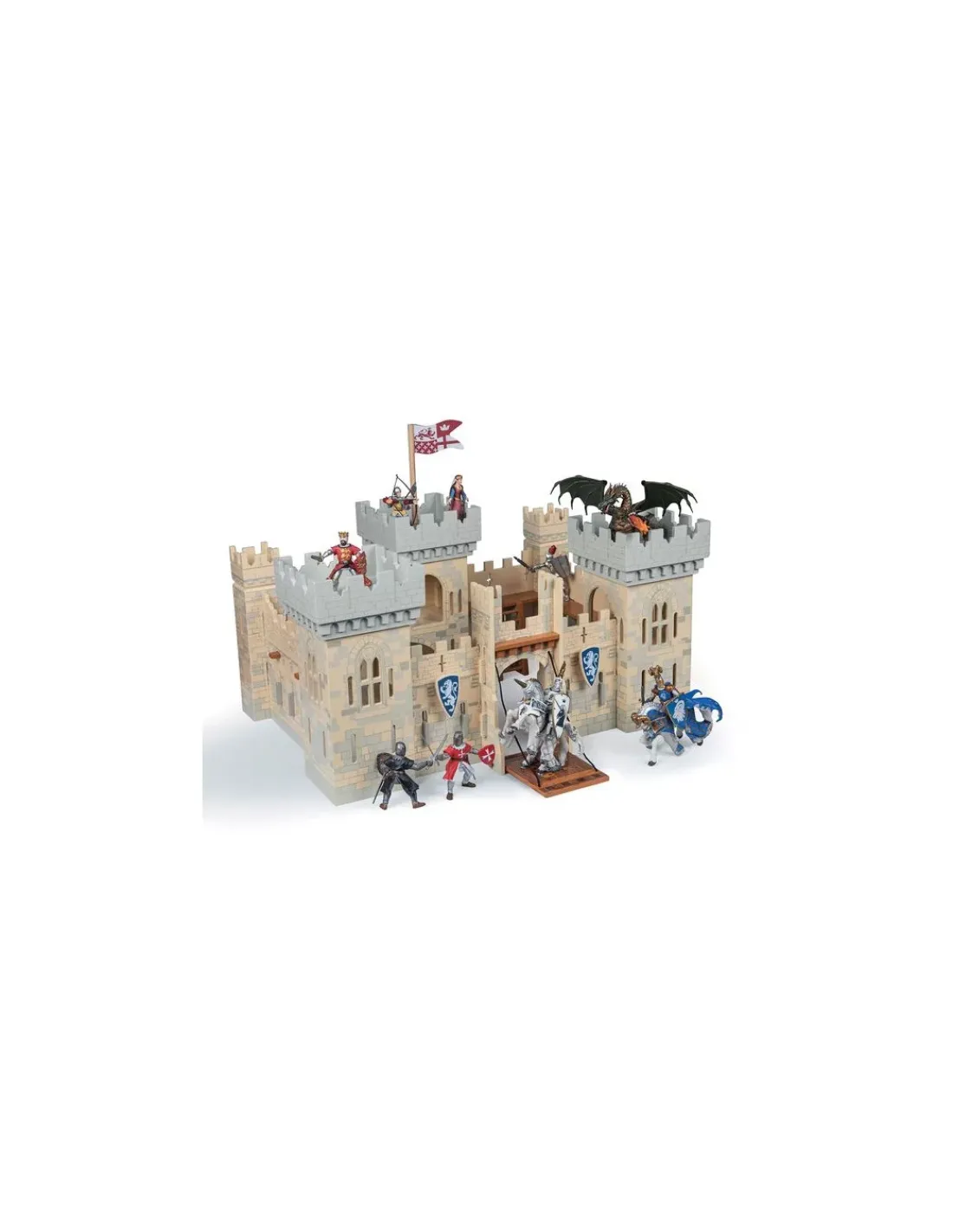 Les différentes pièces s’assemblent facilement par le biais d’encoches, le pont levis s’ouvre et se referme, un chemin de guet permet aux guetteurs d’anticiper tout assaut ennemi. Livré avec des drapeaux et des écussons.
