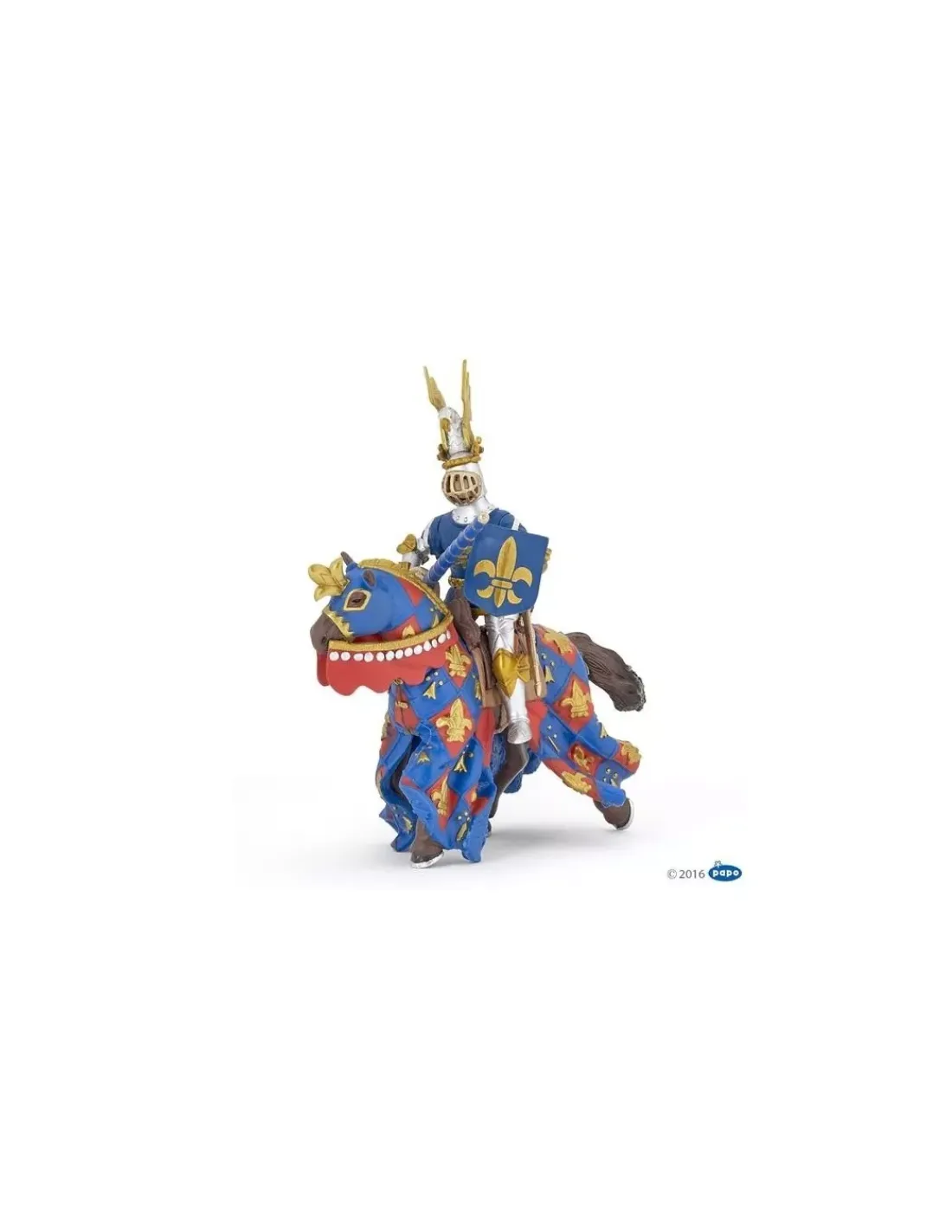 Papo vous présente la figurine du cheval bleu fleur de Lys qui prendra vie dans les mains de votre enfant pour de très belles histoires dans le monde des chevaliers.
