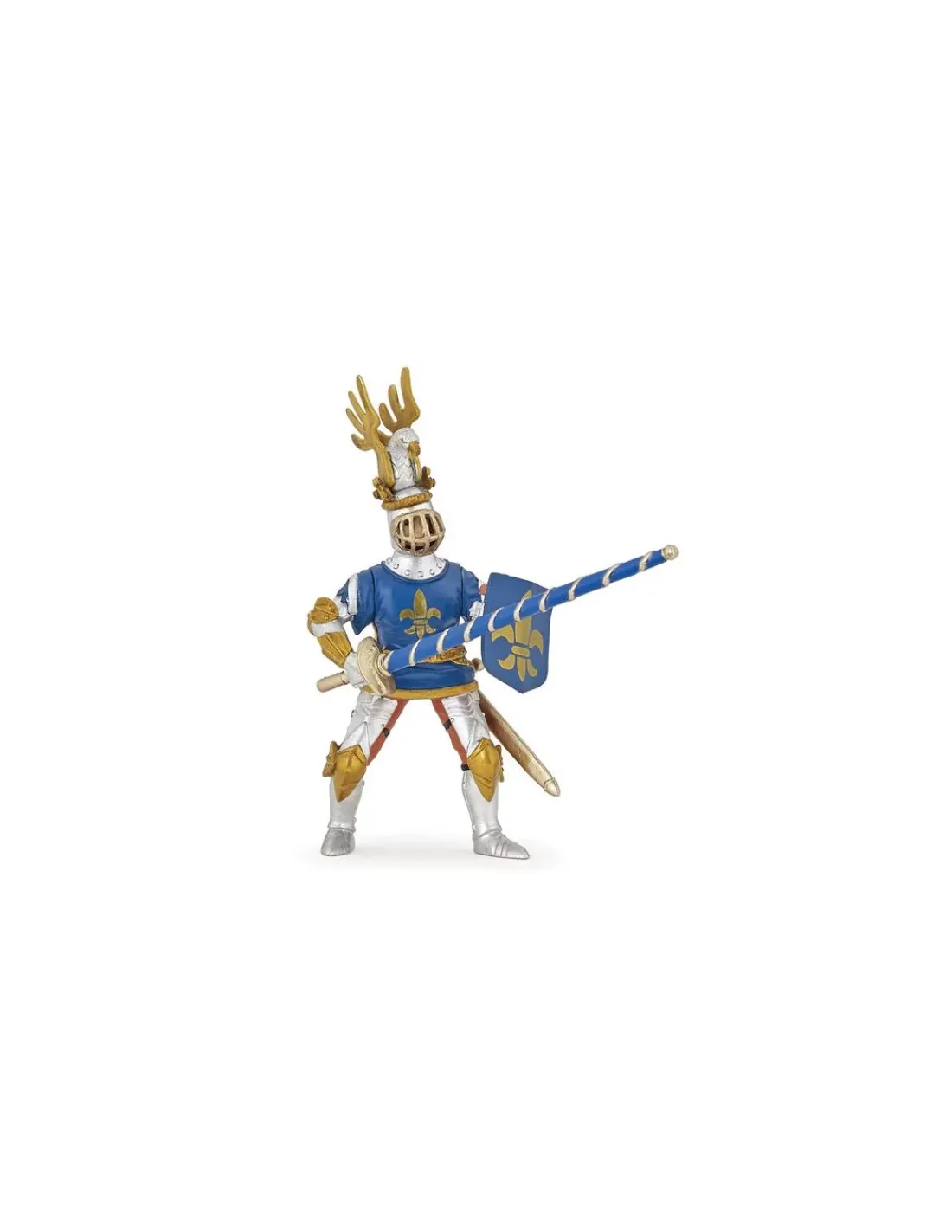 Papo vous présente la figurine du chevalier bleu fleur de Lys qui prendra vie dans les mains de votre enfant pour de très belles histoires dans le monde des chevaliers.