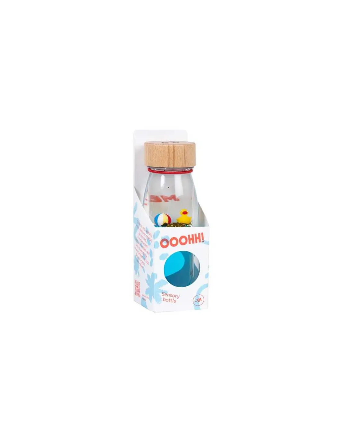 Découvrez la bouteille sensorielle Move canard de Petit Boum, une bouteille flottante révolutionnaire avec une double paroi offrant un effet loupe, idéal pour observer un adorable canard de bain, un petit ballon… Une jolie bouteille sensorielle contenant du liquide bleu, que votre enfant va s’amuser à secouer et à faire rouler.