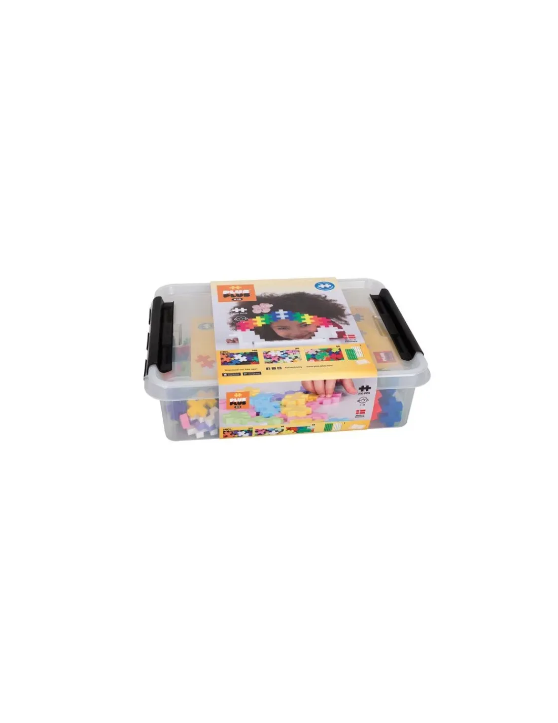 Le coffret contient 200 pièces, une base de construction et un guide illustré. Ce coffre solide et rigide vous permettra de stocker vos PlusPlus et de les transporter facilement grâce aux deux poignées de fermeture pour un transport sécurisé.