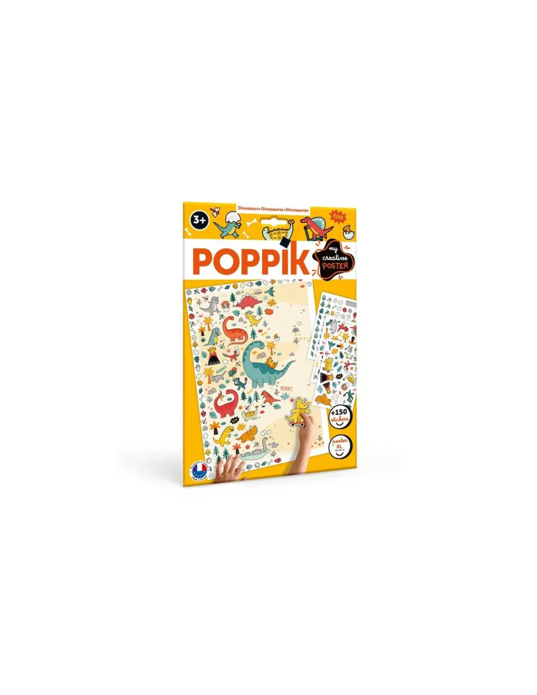 Découvrez Mon poster créatif Dinosaures de Poppik, un poster à compléter avec des stickers sur le thème des dinosaures à partir de 3 ans.