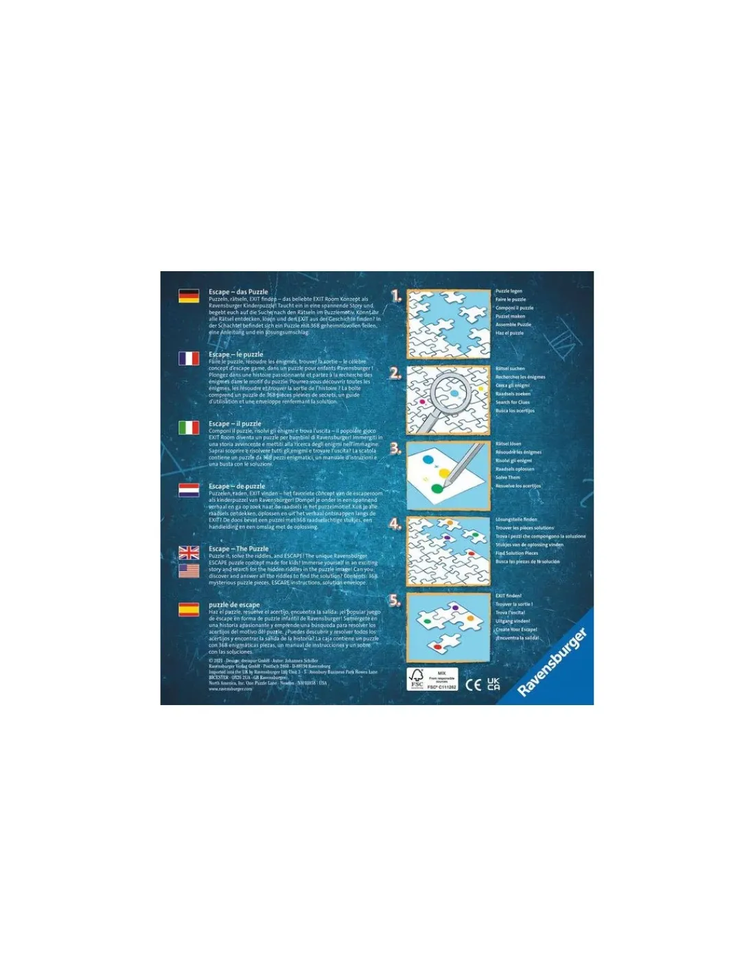Découvrez l’escape puzzle kids La forêt magique de Ravensburger, un puzzle de 368 pièces en carton pour les enfants à partir de 9 ans. Découvrez la première offre de puzzles inspirée des jeux d’évasion adaptée aux enfants.