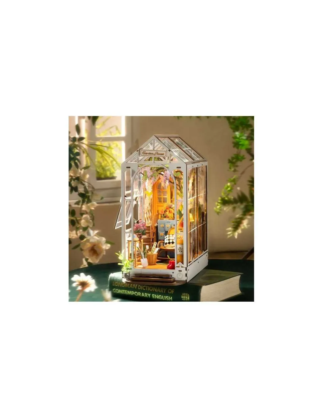 Découvrez la Maquette Gardenhouse Book Nook de Rolife, une maquette miniature avec lumière LED et interrupteur tactile, créant une atmosphère florale dans votre bibliothèque. Un puzzle 3D en bois à réaliser à partir de 14 ans, une activité créative DIY pour créer votre scène miniature.