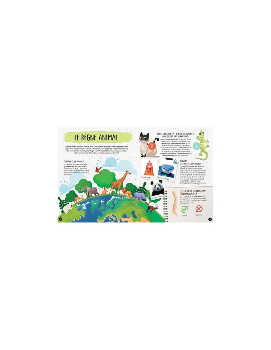 Notre planète abrite une grande variété d’animaux. Vertébrés et invertébrés peuplent tous les coins de la terre, s’adaptant de façon extraordinaire à tous les habitats, même les plus extrêmes. Lis cet atlas et découvre toutes les réponses à tes questions sur le règne animal.