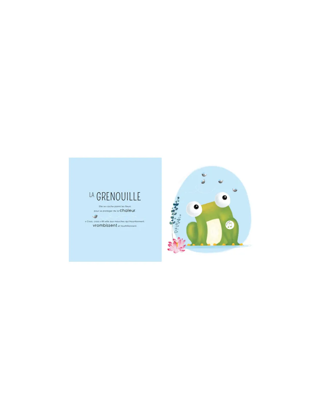 Feuillette les pages de ce livre pour découvrir les petits habitants de la jungle et appuie sur les boutons pour écouter leurs cris. Un livre sonore aux délicates illustrations pastel et aux douces rimes pour faire découvrir les cris des animaux aux tout-petits.