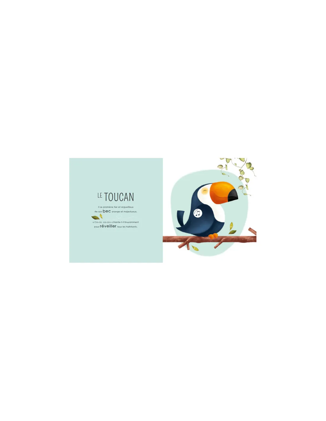 Découvrez le livre sonore les petits habitants de la jungle de Sassi, un grand livre de 12 pages pour écouter les sons des animaux de la jungle: toucan, éléphant, grenouille… Un superbe cadeau pour passer de beaux moments avec son enfant.