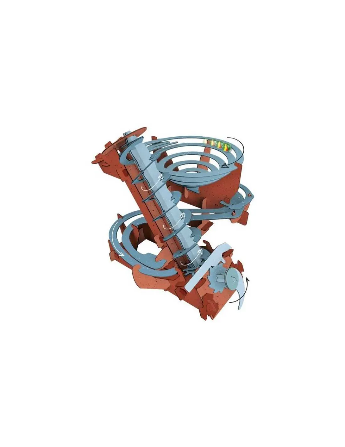 Une bille qui roule sur le sol s’arrête tôt ou tard : à un certain moment intervient une force de friction qui les empêche d’effectuer ce qu’on appelle le « mouvement perpétuel ». La recherche d’un mouvement qui ne s’arrête jamais a toujours fasciné les scientifiques et les inventeurs, dont Léonard de Vinci. Pour Léonard, la recherche de cette chimère représentait une opportunité unique d’imaginer l’impossible, et c’est précisément à partir de là que l’on peut commencer à construire la maquette, librement inspirée d’un ensemble de différentes machines conçues par un autre grand inventeur : Archimède de Syracuse.