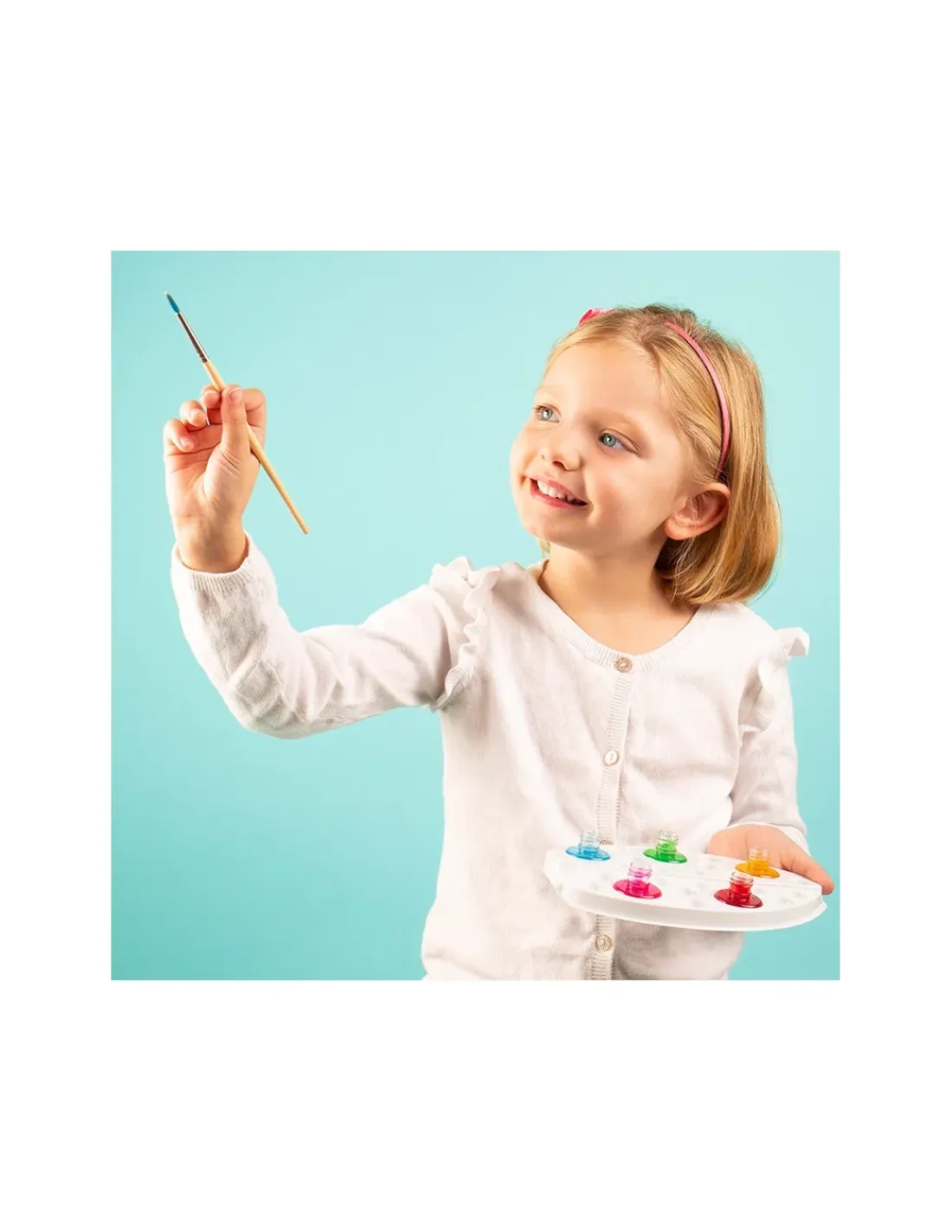 Le coffret comprend 4 tableaux sertis 18 x 25 cm, 5 flacons d’aquarelles lavables et non toxiques, 1 pinceau aquarelle de très grande qualité, 1 pipette, 1 palette pour mélanger les encres et une notice.