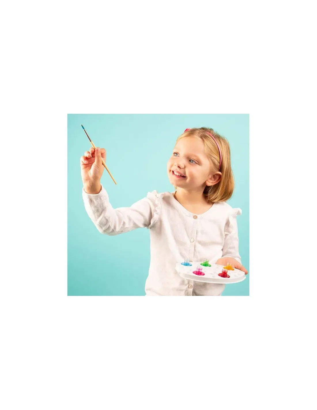 Le coffret comprend 4 tableaux sertis 18 x 25 cm, 5 flacons d’aquarelles lavables et non toxiques, 1 pinceau aquarelle de très grande qualité, 1 pipette, 1 palette pour mélanger les encres et une notice.