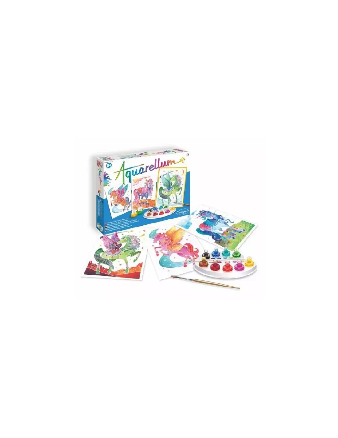 Découvrez le coffret Aquarellum licornes et pégases de Sentosphère, un coffret à partir de 8 ans pour illustrer 3 tableaux sertis avec les 9 pots d’aquarelle.