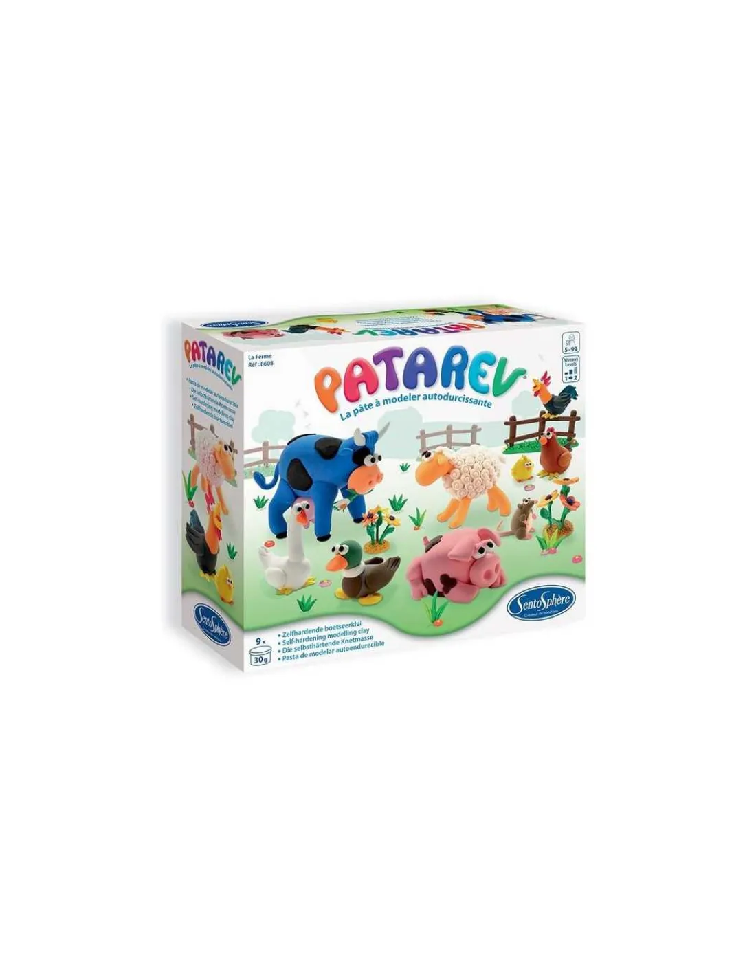 Découvrez le coffret Patarev La Ferme de Sentosphère, une activité créative pour les enfants dès 6 ans. Une pâte à modeler révolutionnaire : elle est facile à manipuler, sèche à l’air libre, sans craquer, pour vous permettre de conserver vos créations.