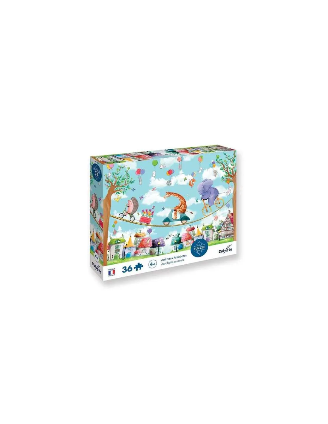 Découvrez le puzzle Animaux acrobates de la collection Calypto de Sentosphère, un puzzle de 36 pièces en carton, fabriqué en France, pour les enfants dès 4 ans.