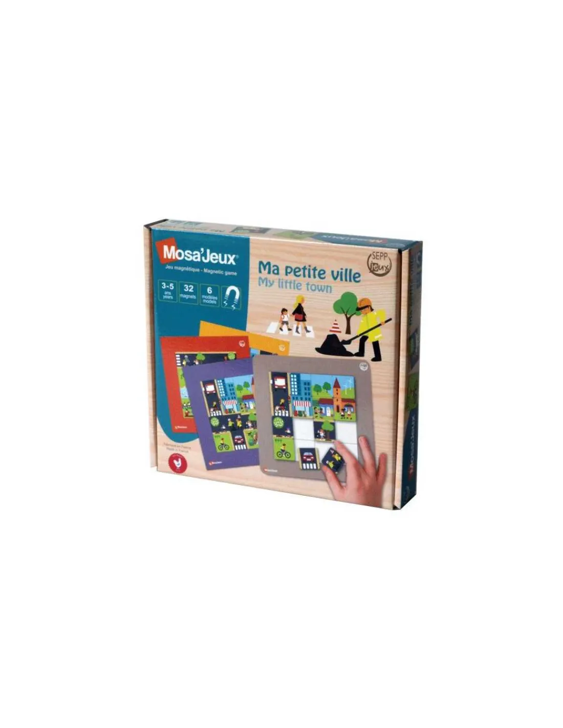 Découvrez le coffret Mosa’Jeux Ma petite ville de SEPP Jeux, une mosaïque magnétique composée de pièces aimantées permettant aux enfants de reproduire des scènes sur le thème de la ville. Un jeu éducatif fabriqué en France pour les enfants de 3 à 5 ans.