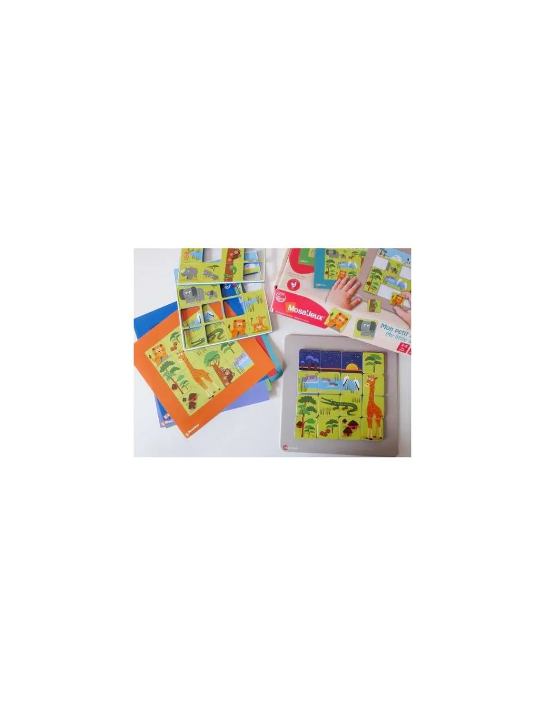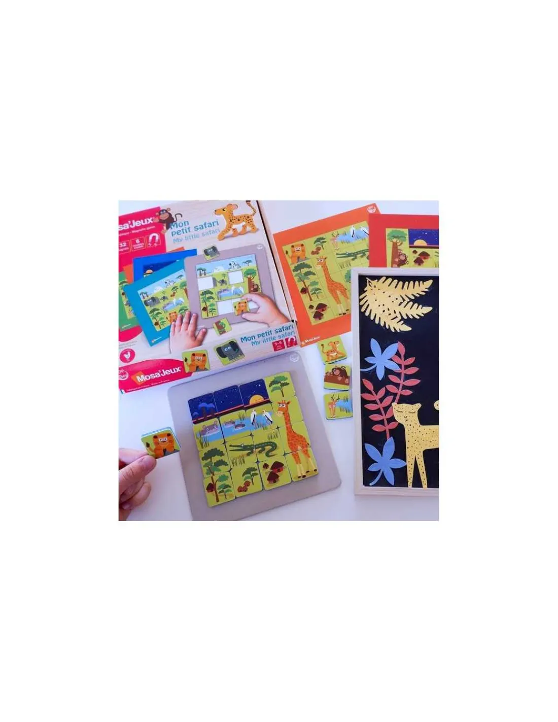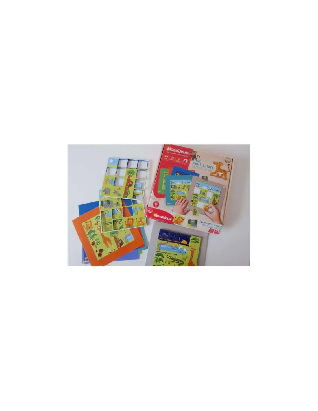 Découvrez le coffret Mosa’Jeux Mon petit safari de SEPP Jeux, une mosaïque magnétique composée de pièces aimantées permettant aux enfants de reproduire des scènes sur le thème de la savane. Un jeu éducatif fabriqué en France pour les enfants de 3 à 5 ans.