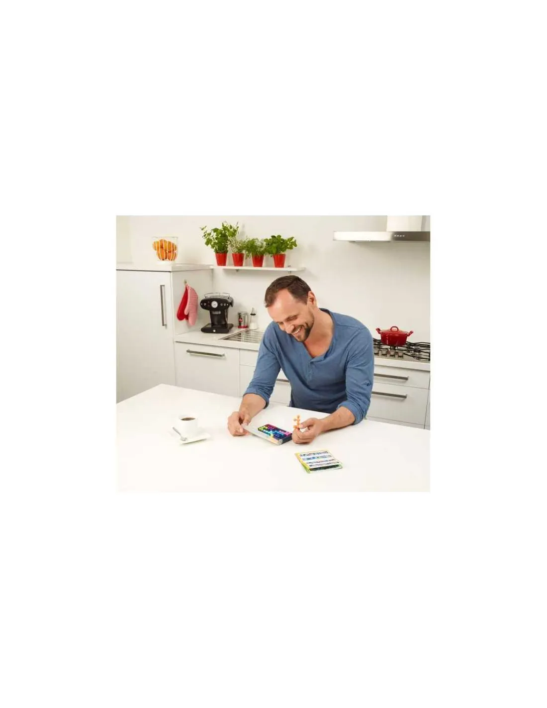 Le jeu comprend 1 coffret de jeu, 10 pièces de couleur en 3D et 1 livret contenant 120 défis et leurs solutions.