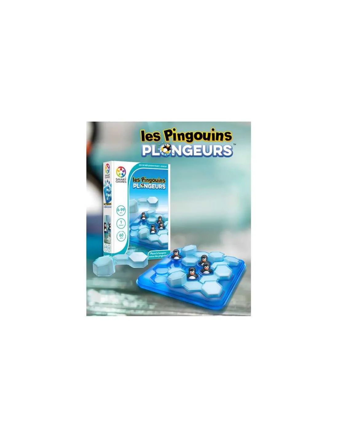 Découvrez le jeu Les pingouins plongeurs de SmartGames, un jeu de logique et de réflexion pour les enfants dès 6 ans avec 60 défis évolutifs à réaliser où vous devrez placer la banquise autour des pingouins.