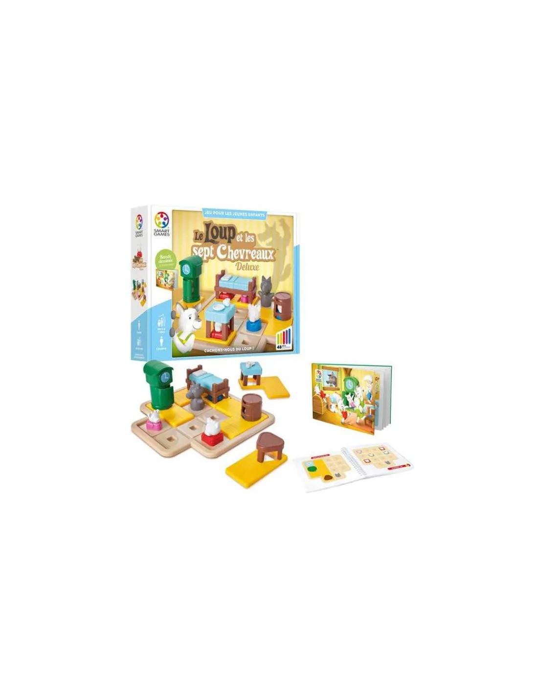 Découvrez le jeu Le loup et les 7 chevreaux de Smartgames, un jeu de logique et de réflexion avec 48 défis conçu pour les enfants de 3 à 7 ans.
