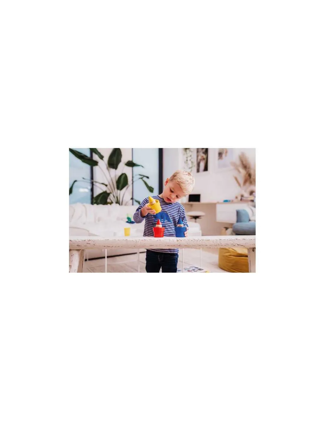 Choisissez un défi adapté à l’âge de l’enfant et tentez de reproduire l’illustration en utilisant les lutins et les pots fournis. Vous saurez que vous avez trouvé la solution idéale lorsque la vue de face de votre création correspondra parfaitement à celle du défi proposé.