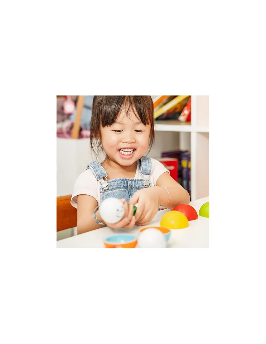 Pouvez-vous voir où se cachent ces drôles de boules? Essayez d’empiler les pièces aimantées ou jouez une partie de cache-cache avec ces boules aux drôles de visages!