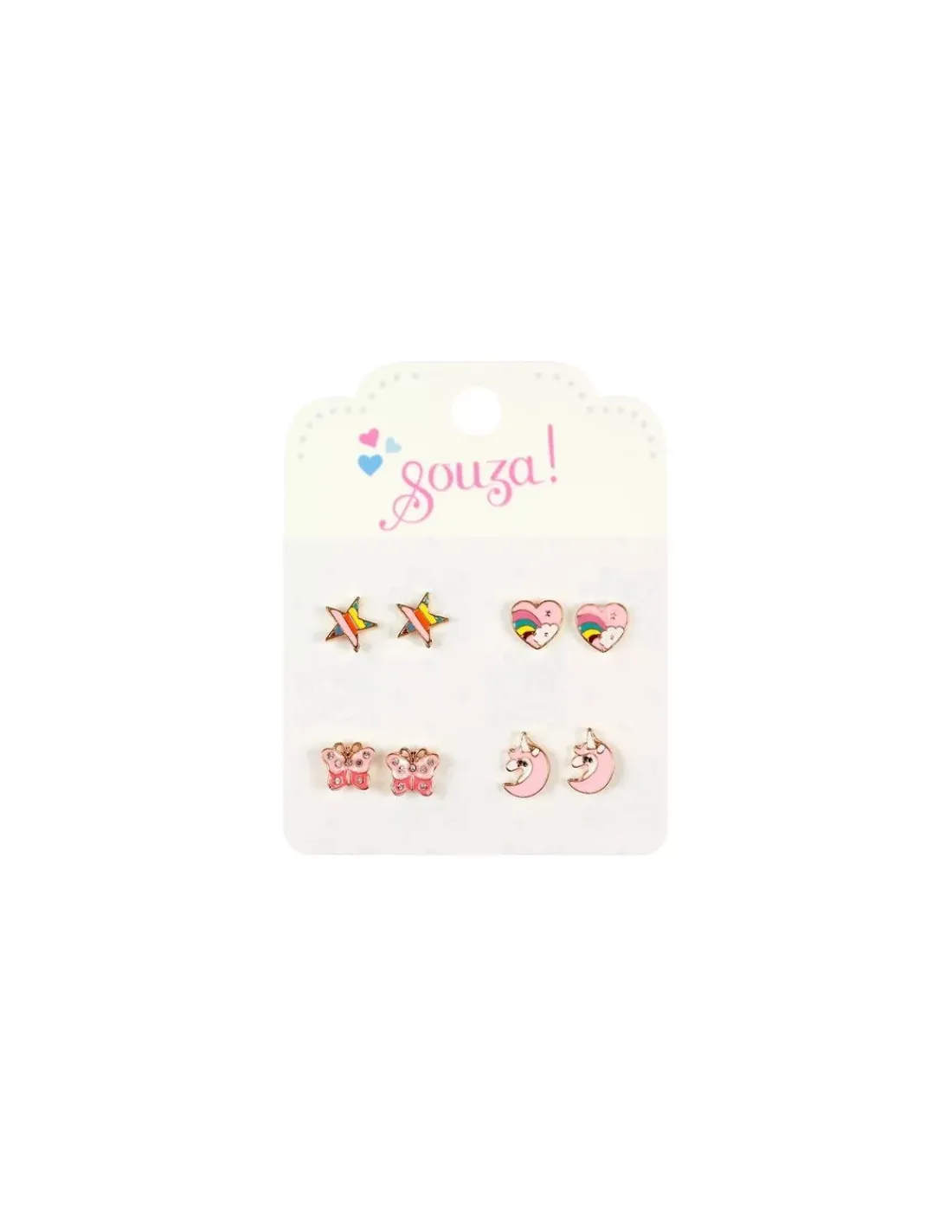 Un cadeau comprenant 4 paires boucles d’oreilles avec étoiles coeurs, papillons et licornes.
