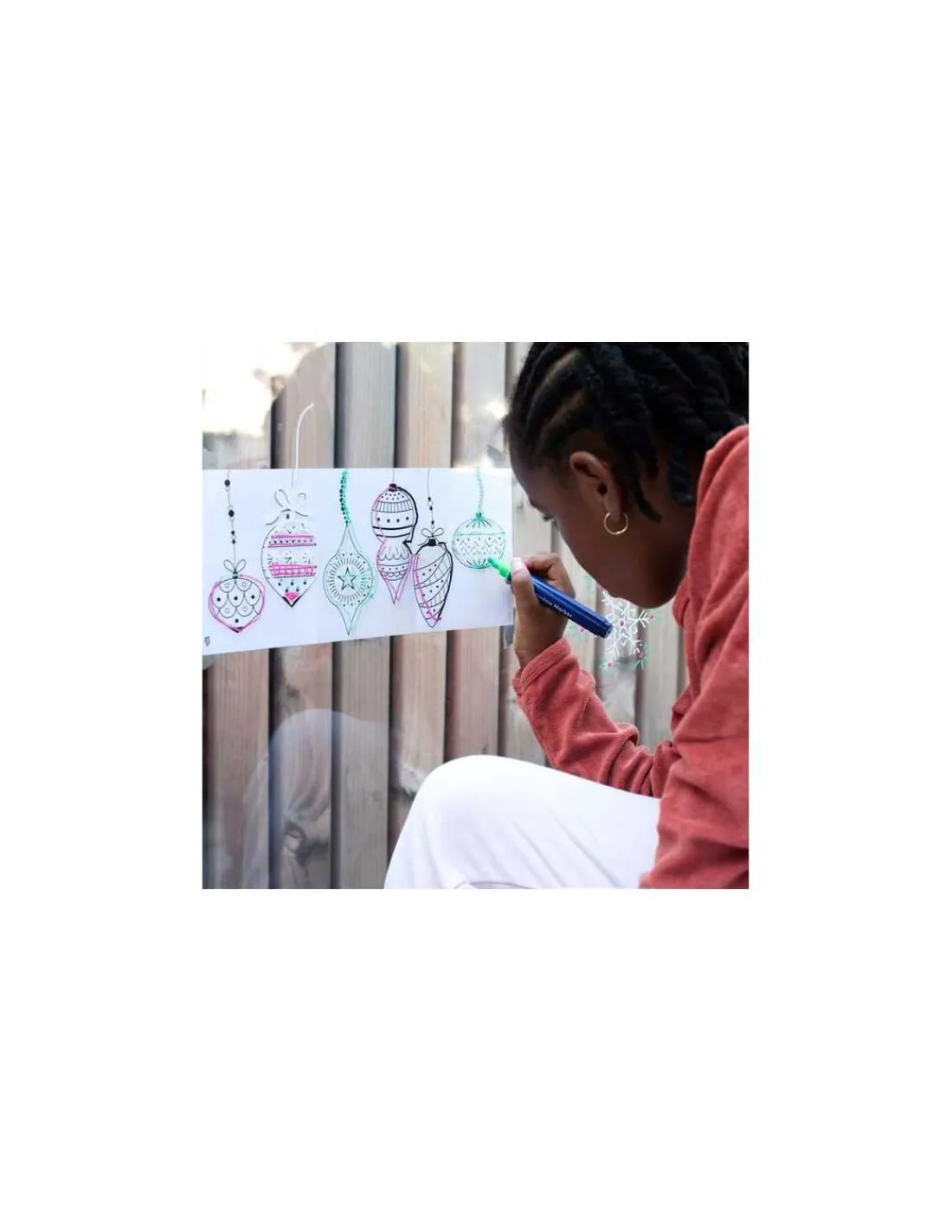 Les feutres, extra larges et sans odeur, sont lavables à sec ou à l’eau, et leur encre à base d’eau sèche rapidement, garantissant une utilisation sûre pour les enfants dès 3 ans. Avec leurs couleurs éclatantes et une pointe ronde de 3mm, ces feutres permettent de créer et personnaliser vos décorations de Noël avec précision.