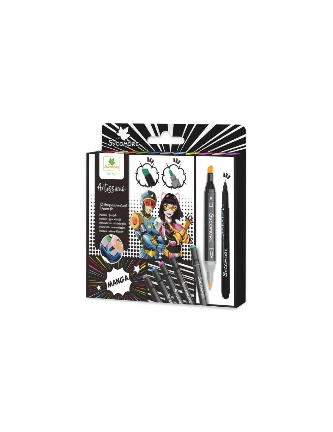 Découvrez la pochette de 10 marqueurs à alcool et feutre fin Manga de la collection Artissimo de Sycomore, un coffret idéal pour développer la créativité des enfants dès 10 ans.