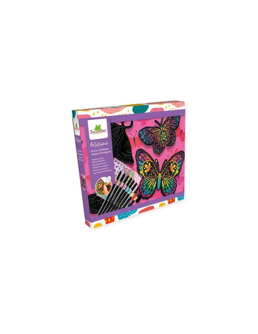 Découvrez le coffret de Feutres métallisés papillons flamboyants de Sycomore, un coffret de loisirs créatifs de la collection Artissimo pour les enfants à partir de 7 ans sur le thème des papillons.