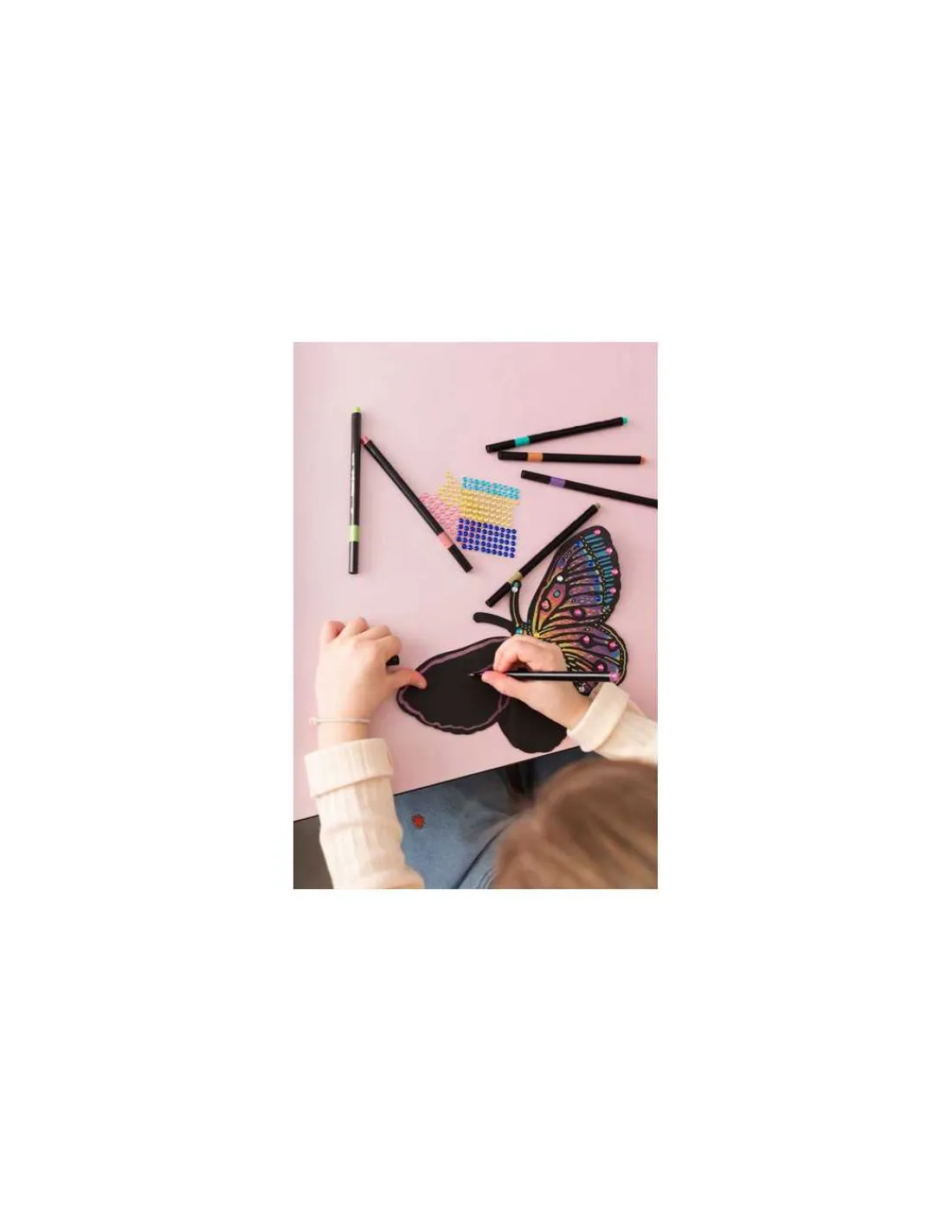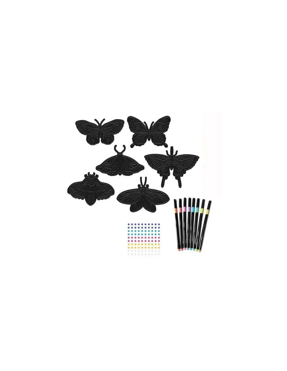 Réalisez ces 6 tableaux gaufrés en formes de papillons à colorier grâce aux 8 feutres métallisés. Les feutres ont des couleurs vives et une pinceau. Vous pourrez finir de décorer les papillons avec des gems pour avoir un rendu encore plus étincelant.