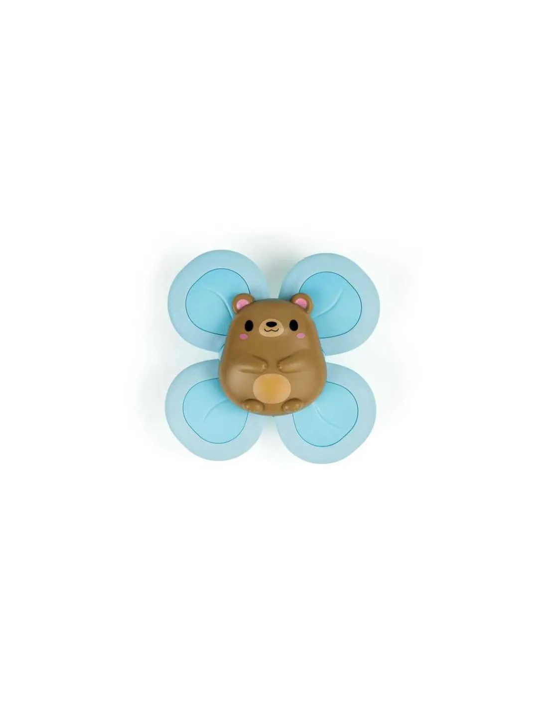 Conçu pour encourager la motricité fine, le jeu sensoriel et l’apprentissage par cause à effet, ce jouet présente un adorable ours équipé d’un élément de rotation à quatre palettes. Une solide ventouse permet de le fixer facilement à toute surface lisse (baignoires, carreaux, chaises hautes, miroirs, réfrigérateurs et vitres de voiture).
