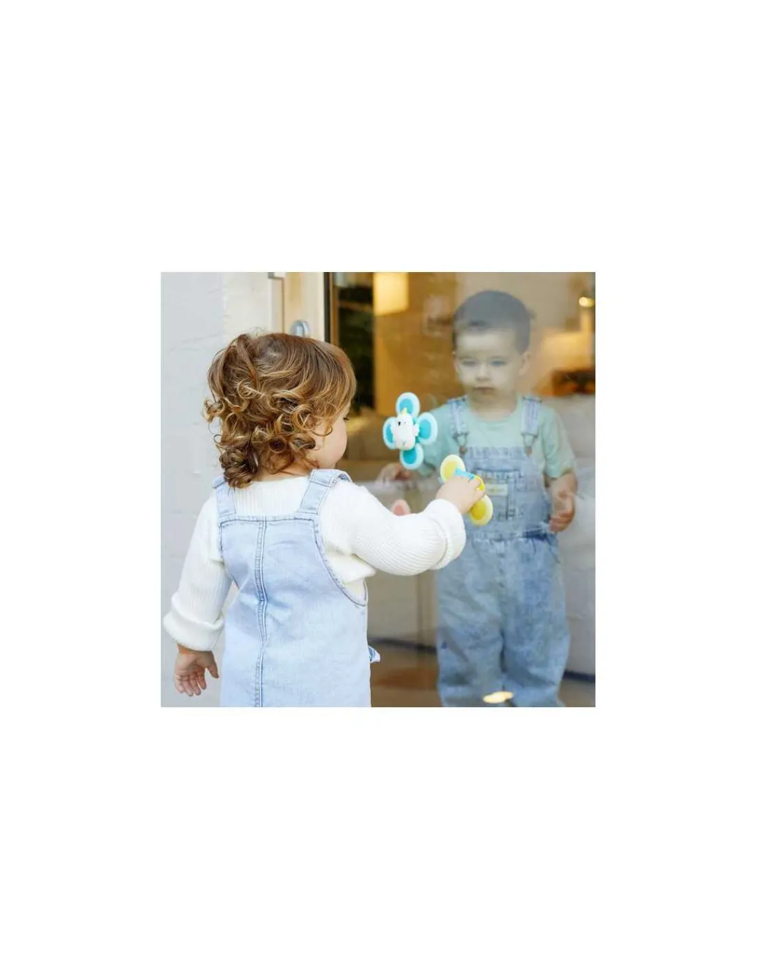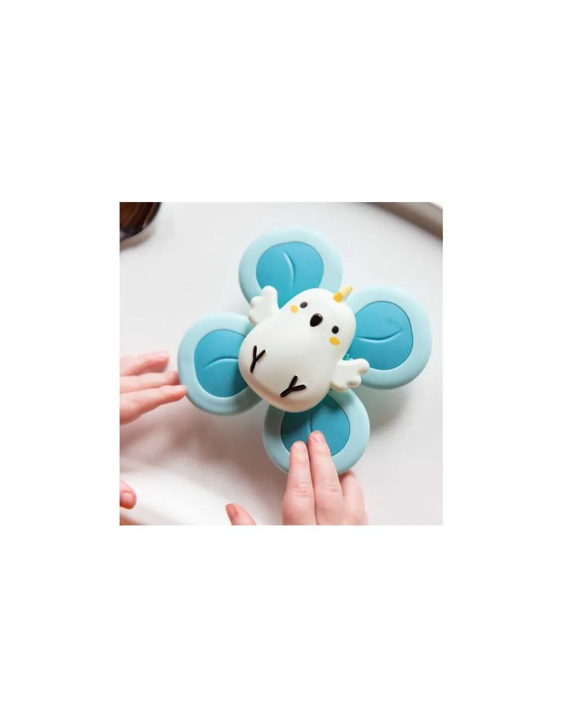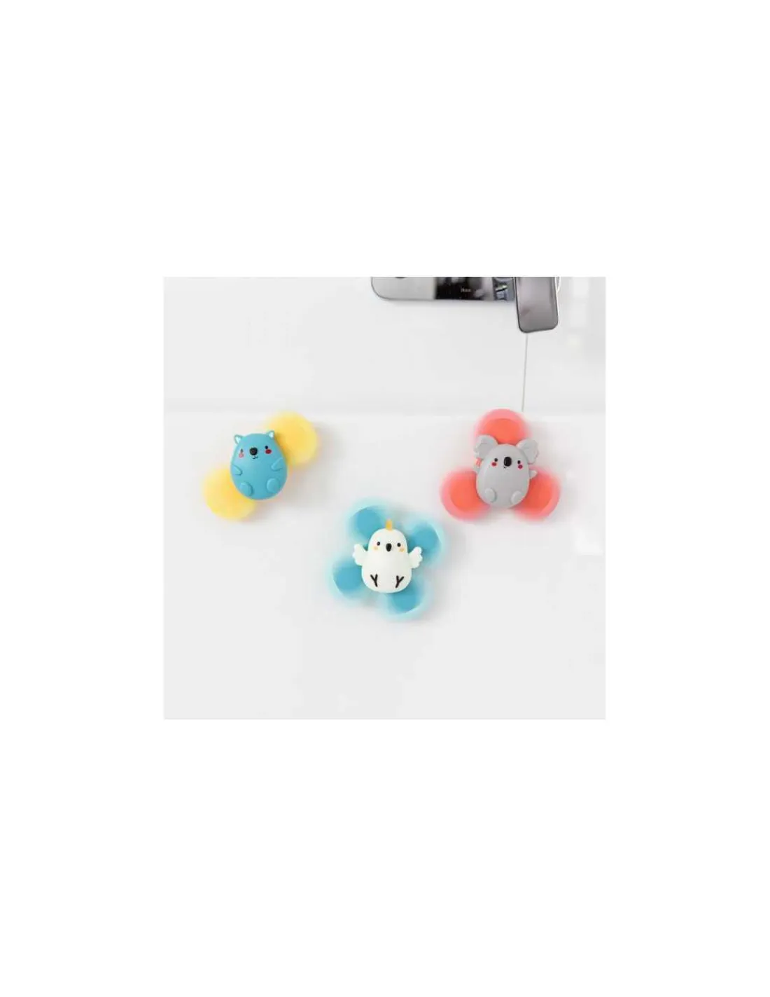 Conçu pour encourager la motricité fine, le jeu sensoriel et l’apprentissage par cause à effet, ce jouet présente un trio d’adorables animaux australiens dotés chacun d’une toupie à deux, trois ou quatre pales. Une solide ventouse permet de le fixer facilement à toute surface lisse (baignoires, carreaux, chaises hautes, miroirs, réfrigérateurs et vitres de voiture).