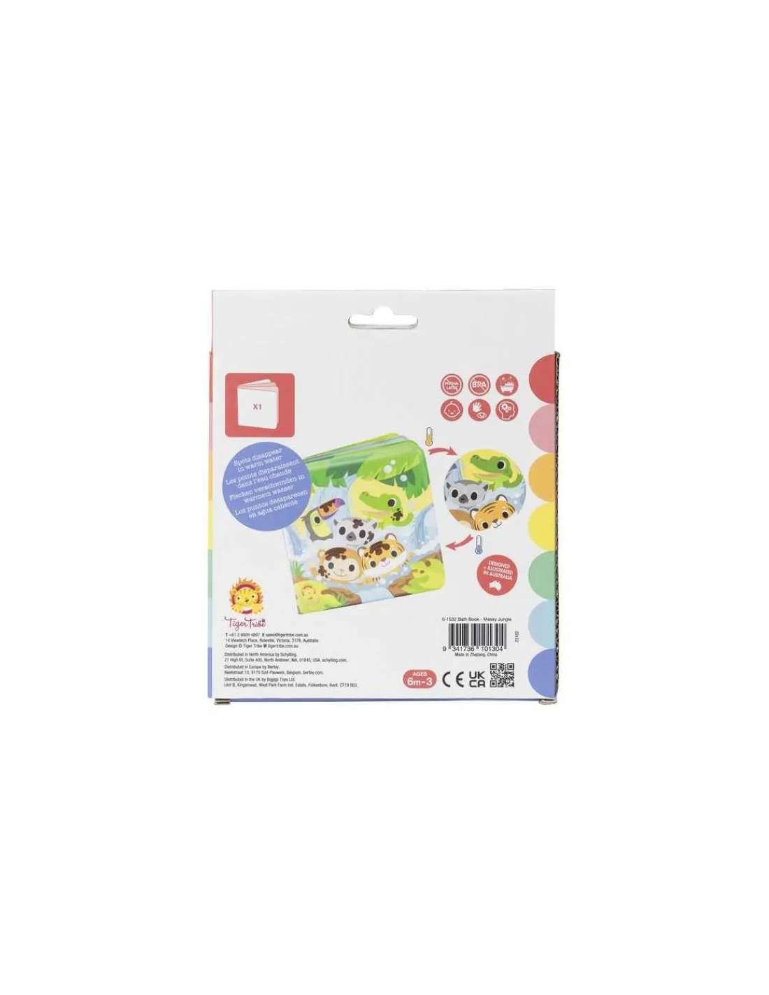 Découvrez le livre de bain jungle de Tiger tribe, un original jouet de bain pour les enfants à partir de 6 mois, un livre de bain magique qui amusera beaucoup votre enfant. Bienvenue dans le livre de bain « La Jungle en désordre », où vivent d’adorables animaux prêts à se faire chouchouter !