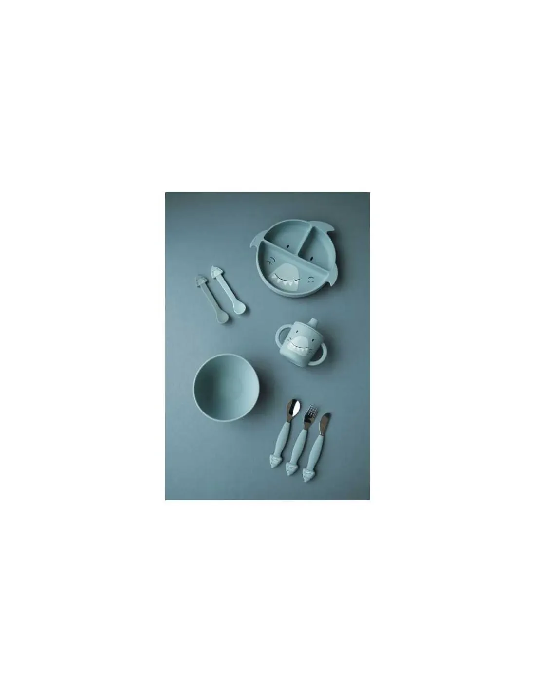 Découvrez le bol en silicone avec ventouse requin de Trixie, une vaisselle pour enfant qui apporte une touche de fantaisie à chaque repas avec la jolie frimousse du requin Trixie.
