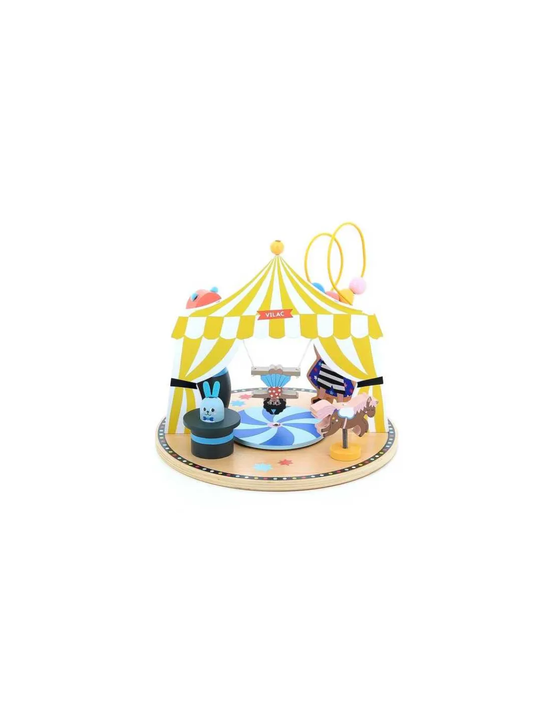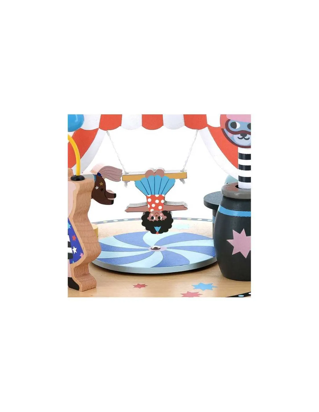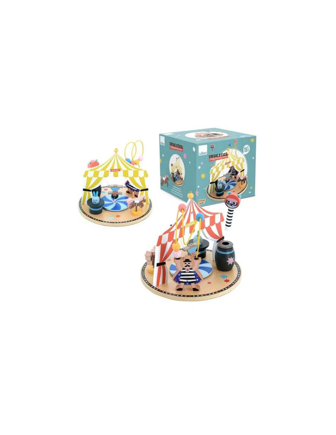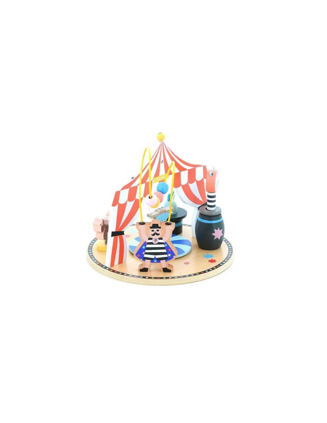 Un adorable jouet en bois, durable qui développera la motricité fine ainsi que la coordination main-oeil. Un jouet d’éveil avec 6 activités différentes sur le thème du cirque pour observer, analyser, comprendre et expérimenter.