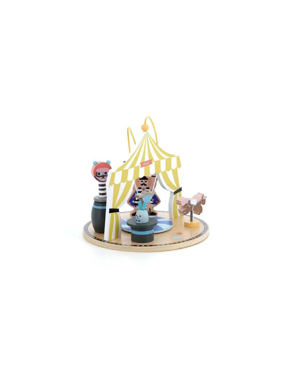 Découvrez le jouet d’éveil cirque de Vilac, un jouet d’éveil en bois illustré par Michelle Carlslund et destiné aux enfants dès 18 mois sur le thème ludique et coloré du cirque. Prenez place sous le chapiteau de cirque Vilac, imaginé par nos designers et illustré par l’artiste Michelle Carlslund, pour un spectacle haut en couleurs !