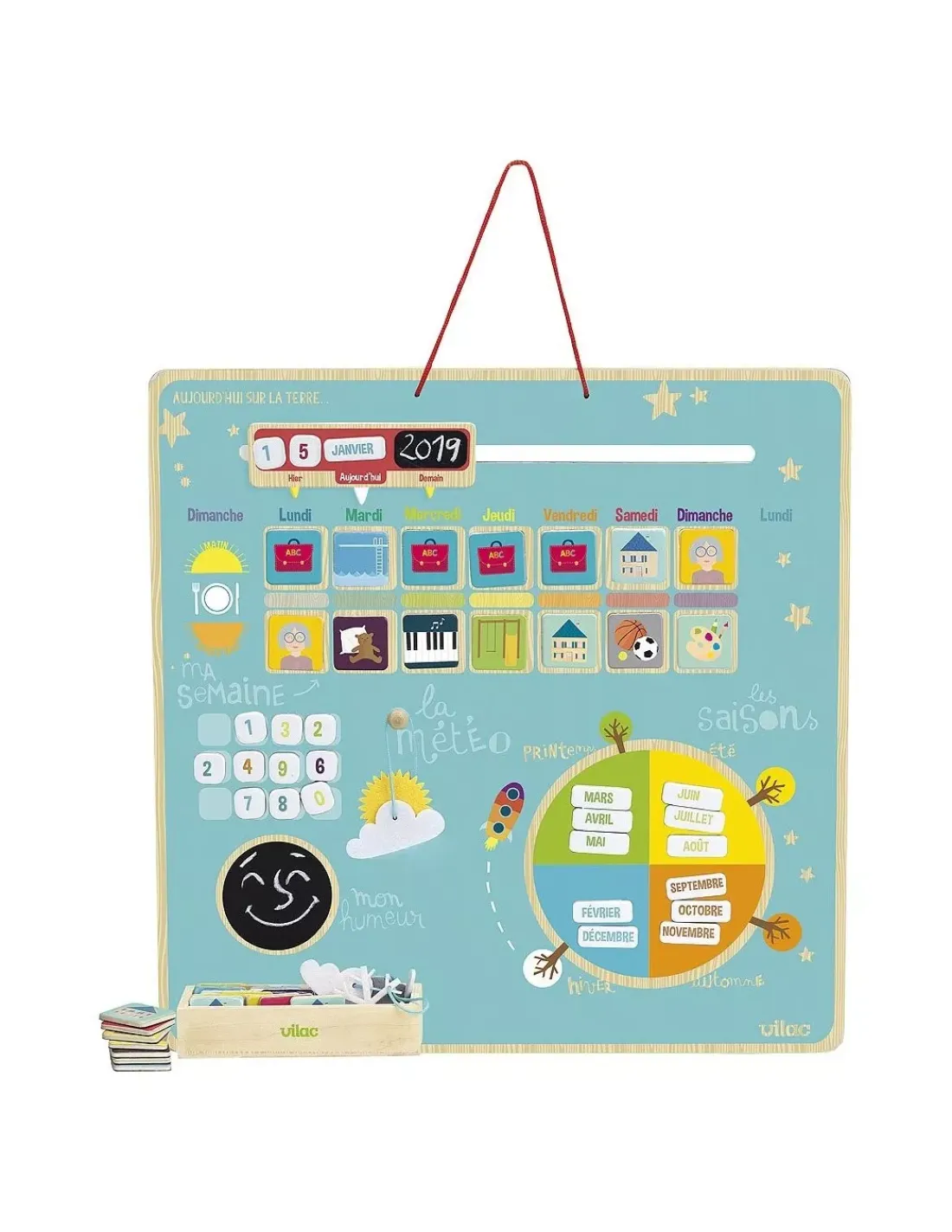 Découvrez le semainier magnétique aujourd’hui sur la terre de Vilac, un magnifique semainier magnétique en bois pour apprendre les jours, les dates, les mois, les saisons, la météo… un semainier éducatif pour les enfants à partir de 3 ans.