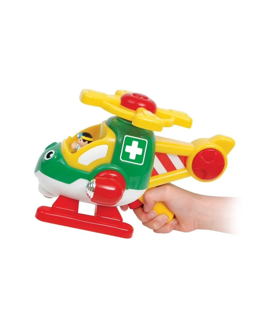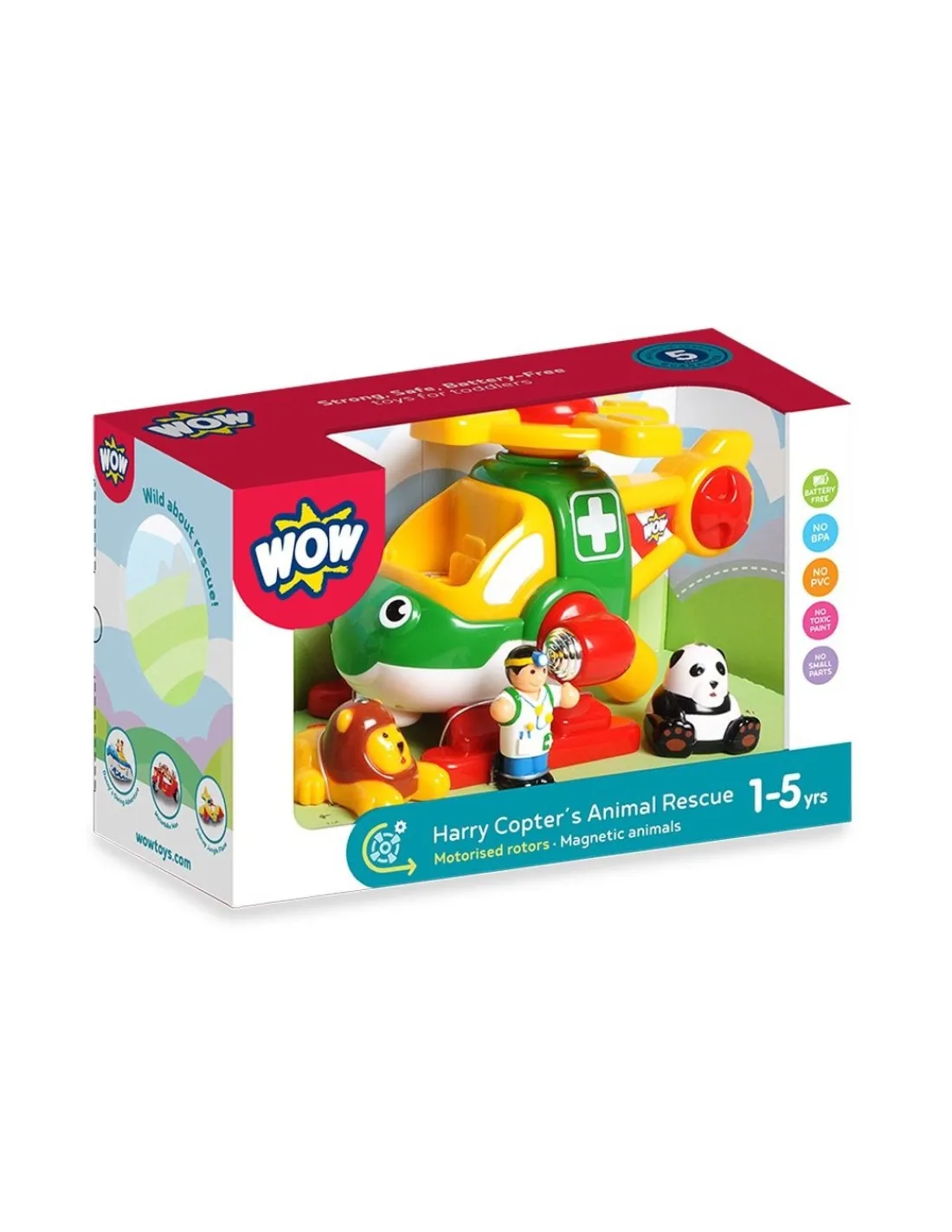 Découvrez Harry l’hélicoptère de Wow toys, le sauvetage des animaux n’a jamais été aussi amusant qu’avec Harry l’hélicoptère de sauvetage motorisé à hélices rotatives. Un hélicoptère sans pile dans un coffret cadeau pour les enfants de 1 à 5 ans qui encourage le développement de la motricité et le jeu de rôle.